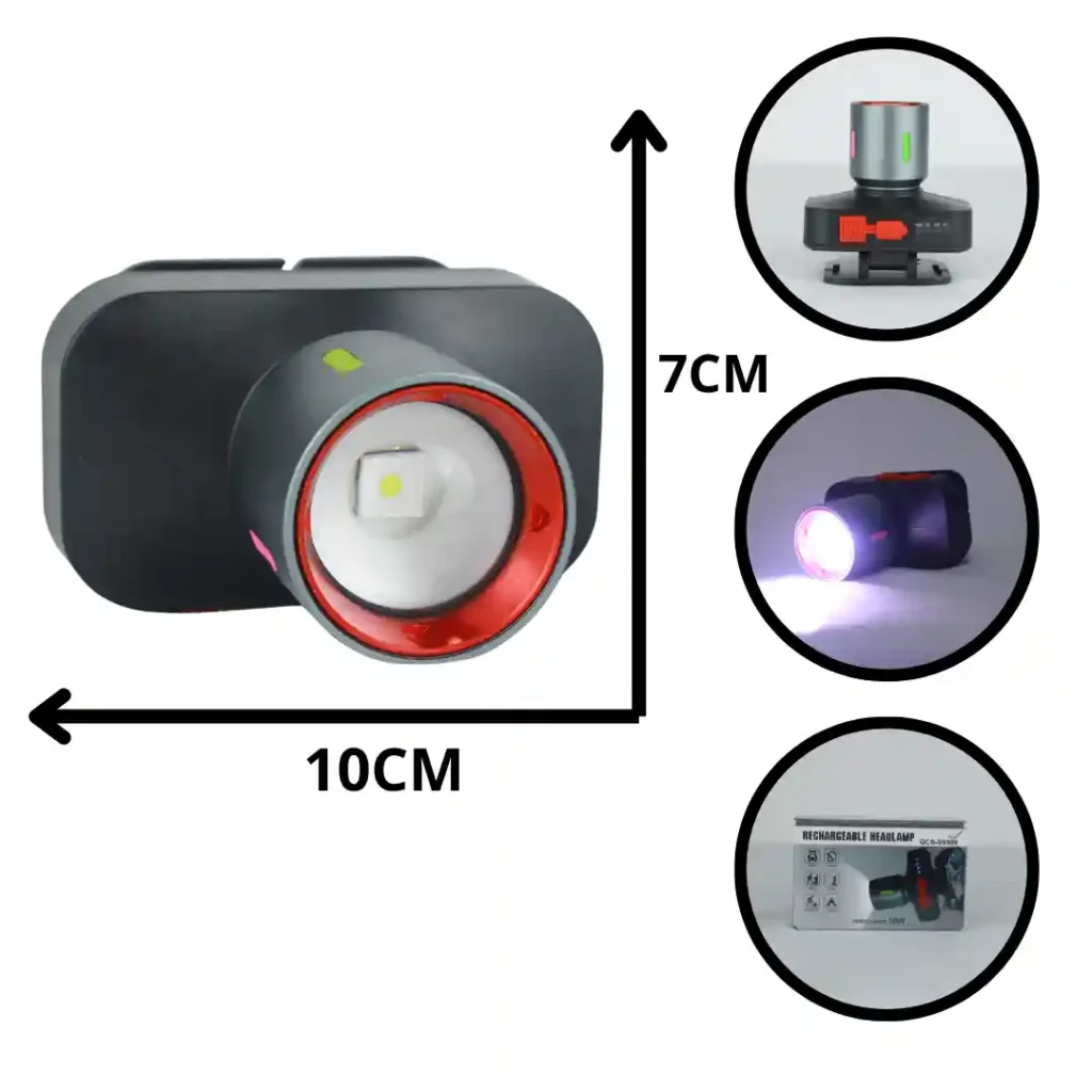 Esta es la linterna minera profesional recargable GCS-SS988, una herramienta indispensable para trabajos nocturnos, reparaciones o cualquier actividad al aire libre. Esta no es una linterna cualquiera; su diseño frontal, compacto y ligero, te permite llevarla cómodamente en la cabeza, liberando tus manos para cualquier tarea.