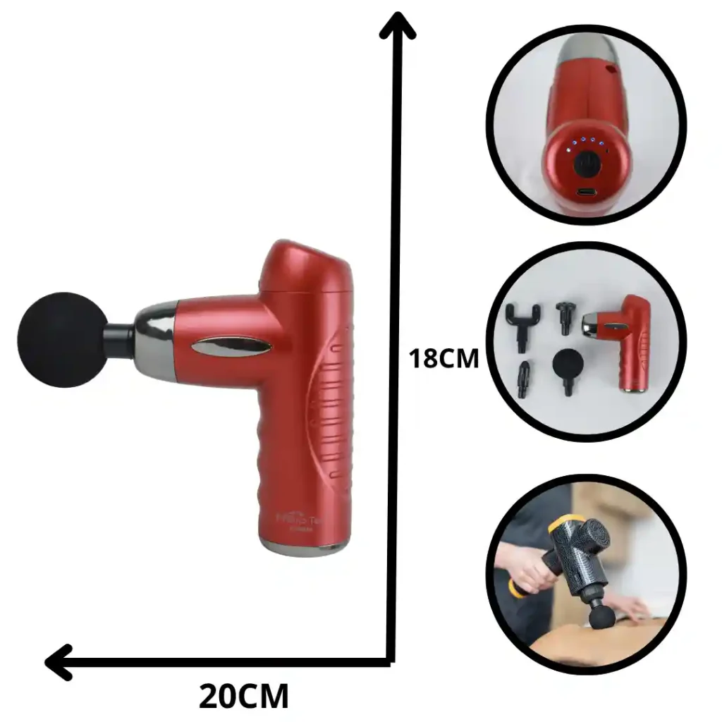 Imagina un terapeuta personal que cabe en tu mano y que puedes llevar a todas partes. Esta pistolita no es solo compacta y atractiva con su vibrante color rojo, sino que es increíblemente potente para ser tan pequeña. Está diseñada para darte un masaje de percusión de tejido profundo que te ayudará a relajar esos nudos musculares, aliviar el dolor y mejorar tu recuperación.