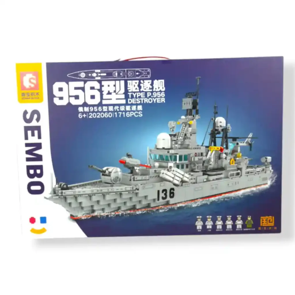 ¡Zarpa hacia la aventura naval con el impresionante set de bloques de construcción del Buque Militar Tipo P.956 Destroyer de SEMBO BLOCK! Este colosal modelo, compatible con LEGO y con el código FOX-1345, te ofrece una experiencia de construcción inmersiva y desafiante con un total de 1716 piezas, ideal para entusiastas de la temática militar y los constructores de todas las edades a partir de 6 años.