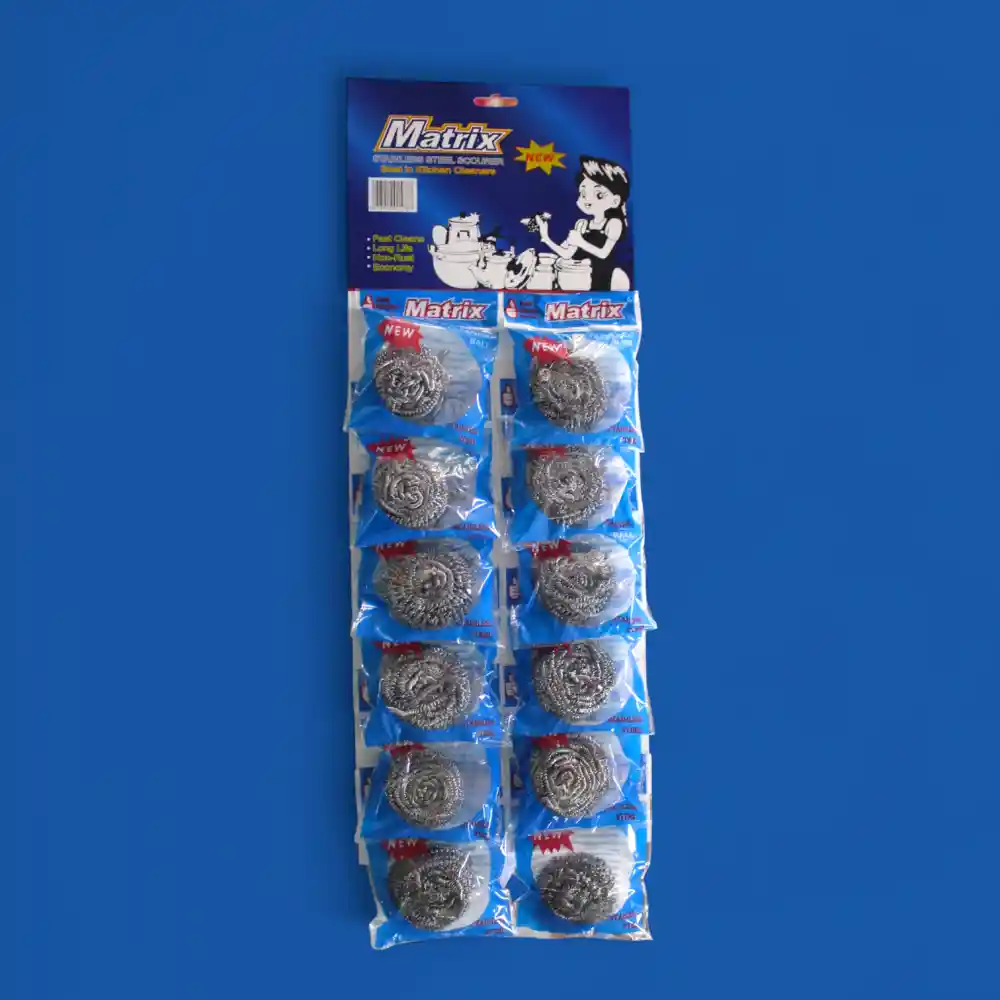 ¿Buscas una solución eficaz para la limpieza difícil en tu cocina y otras áreas del hogar? La Esponja Metálica Matrix X12 057168 es la herramienta ideal para remover la grasa más resistente, la suciedad incrustada y las manchas difíciles, devolviéndole el brillo a tus utensilios y superficies. Este paquete contiene 12 esponjas de acero inoxidable de alta calidad, ofreciendo una excelente relación calidad-precio y una larga duración.