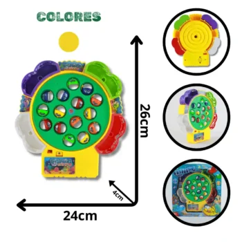 $ 17.500Presentamos el Juego de Pesca Familiar 6872-1M, un juguete clásico y atemporal que fomenta la coordinación y la concentración en los más pequeños. Este set viene con 15 peces de colores surtidos y 4 cañas de pescar, permitiendo que hasta cuatro jugadores participen simultáneamente. La base del juego es una piscina giratoria que, al activarse, hace que los peces abran y cierren la boca de forma intermitente, creando un desafío interactivo para los jugadores. La referencia del producto es 6872-1M.