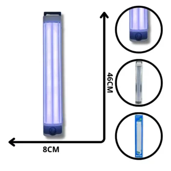 Te presento la lámpara recargable Nano-Tec NT-L3194, el accesorio ideal para iluminar tus noches bajo las estrellas. Su diseño es súper versátil: con sus 25 cm de alto, no solo es una linterna potente, sino que también tiene un panel lateral con luces que ilumina todo a su alrededor, como si fuera una lámpara de mesa. ¡Es como tener dos luces en una!