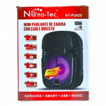 $ 80.000¡Prepárate para la fiesta! Te presento el parlante Nano-Tec NT-P2452, la máquina de diversión que estabas esperando. Es un altavoz súper compacto con unas medidas perfectas: 18 cm de alto, 29 cm de ancho y 13 cm de largo, ¡ideal para llevarlo a todos lados!