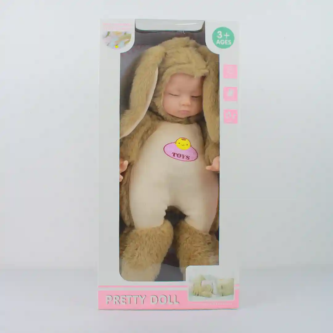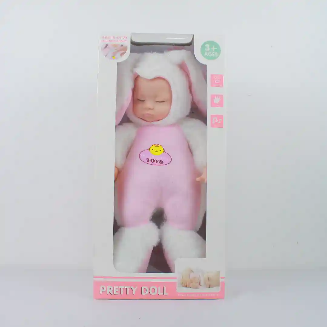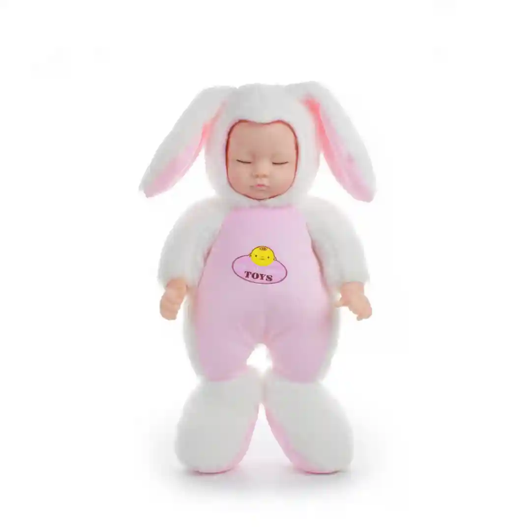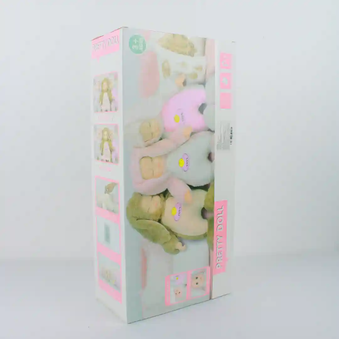 Este producto es una muñeca de peluche con un diseño tierno y atractivo para el mercado de juguetes. Es un artículo de alta rotación, ideal para regalar en festividades como Pascuas, cumpleaños o cualquier ocasión especial para niños y niñas.