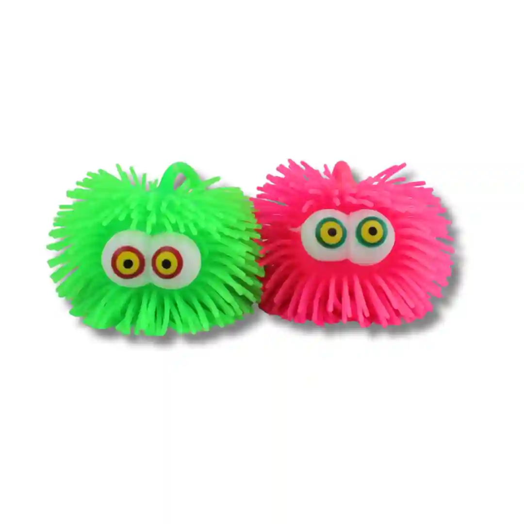 Divertida pelota sensorial con diseño de personaje de grandes ojos, ideal para el entretenimiento infantil y estimulación táctil. Este producto cuenta con una textura de cerdas suaves y elásticas, diseñado para ser presionado y proporcionar efectos visuales a través de su sistema de iluminación integrada.