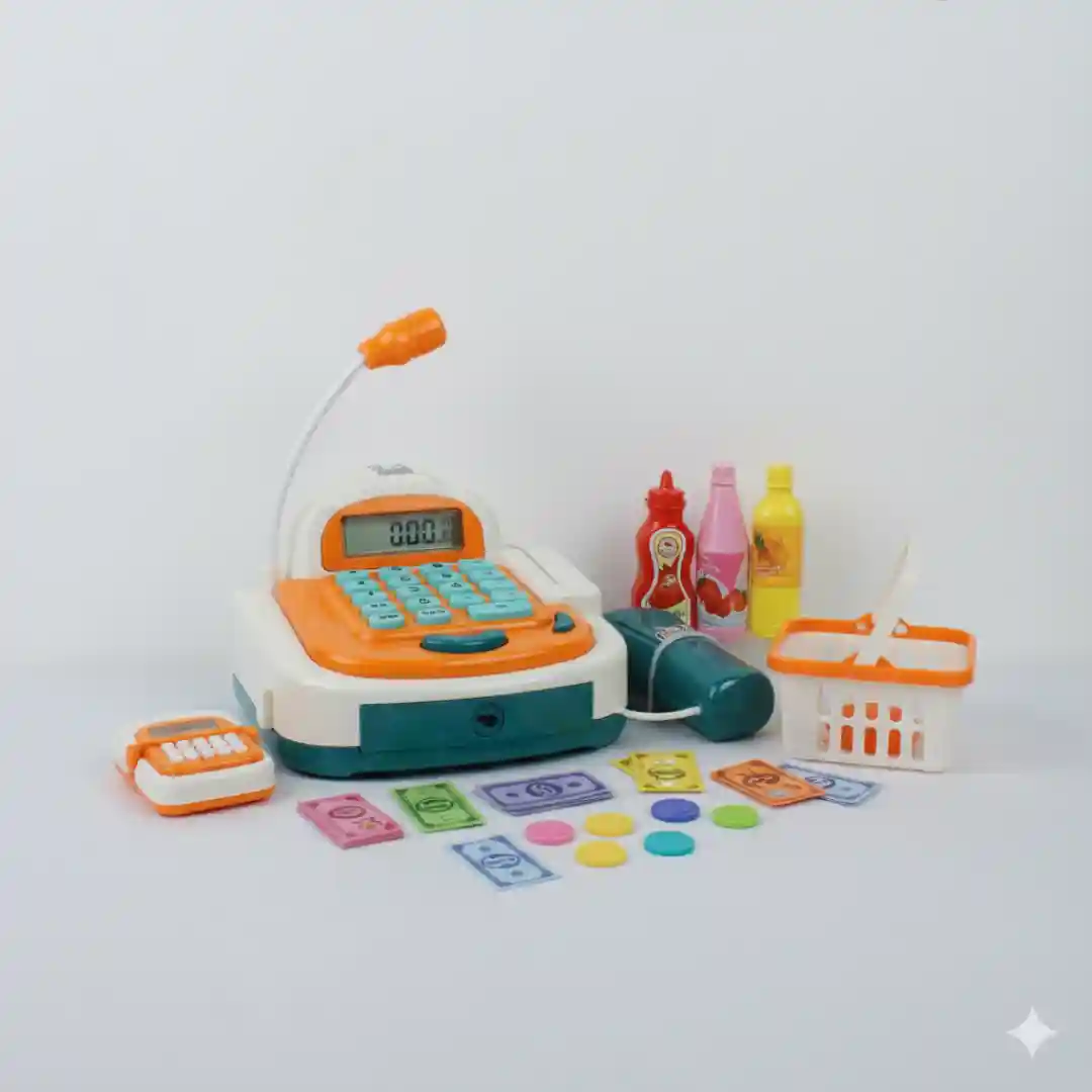 Este producto es un set completo de caja registradora de juguete diseñado para el juego de roles y el aprendizaje interactivo. Su diseño realista con múltiples accesorios y funciones, incluyendo un micrófono funcional, lo convierte en un artículo de alta demanda para el mercado de juguetes didácticos y de entretenimiento.