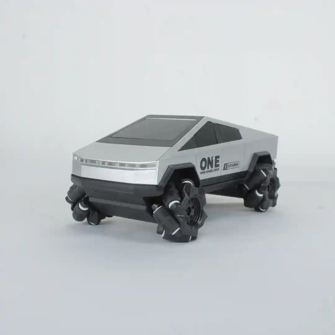 Este modelo RC de la Cybertruck combina un diseño futurista con una construcción robusta para una experiencia de uso atractiva y duradera. La carrocería plateada es una representación fiel de su icónica apariencia.