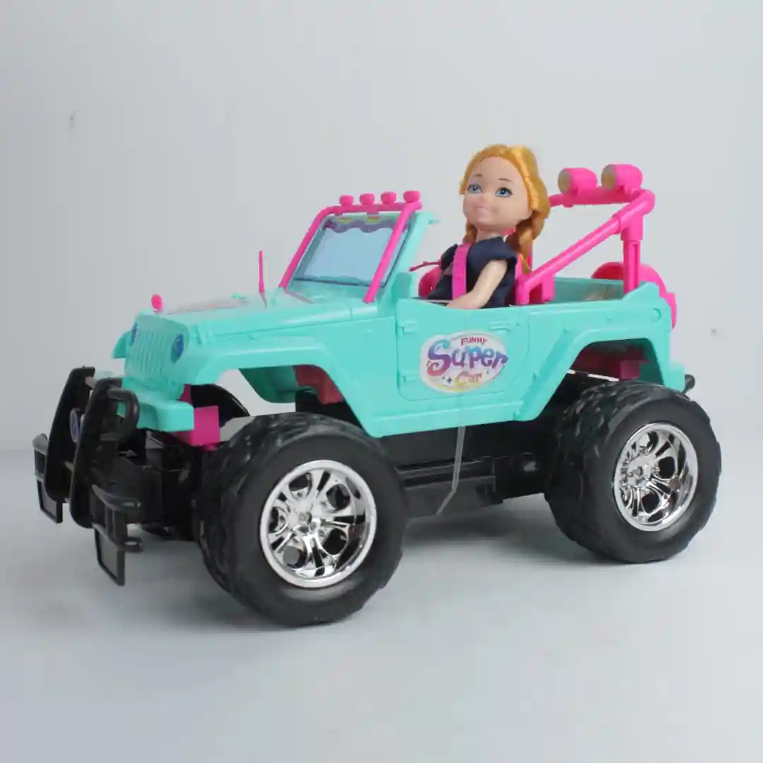 Presentamos el Jeep Off-Road a Control Remoto, un set de juguete temático que combina la robustez de un vehículo todoterreno con un diseño enérgico y apto para niñas. Este conjunto incluye un llamativo Jeep en color Turquesa y Rosa Vibrante y una muñeca articulada preinstalada en el asiento. Cuenta con llantas grandes de estilo Monster Truck y se maneja con un control remoto de diseño deportivo, ofreciendo diversión dinámica y juego de rol.