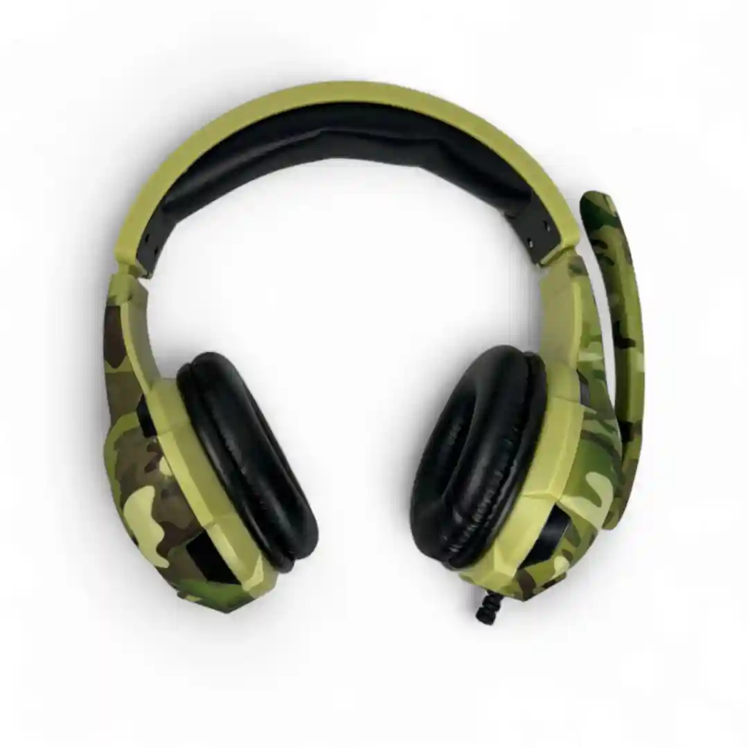 - Diseño Robusto y Ergonómico (Camuflaje): Con un atractivo patrón de camuflaje verde y negro, esta diadema no solo luce genial, sino que también está construida para durar. Las almohadillas acolchadas y la diadema ajustable garantizan horas de comodidad, incluso durante las sesiones de juego más largas.
