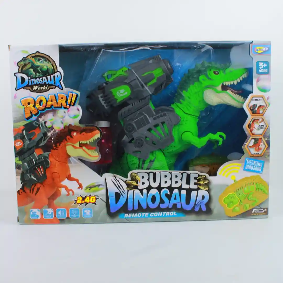 Contenido del empaque: Cada caja incluye un dinosaurio con un lanzador de burbujas en su espalda y un control remoto.