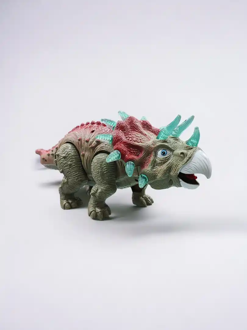 - Diseño realista: Nuestro dinosaurio ha sido cuidadosamente diseñado para recrear la apariencia de un auténtico triceratops. Sus escamas detalladas, sus cuernos afilados y su cuerpo robusto lo hacen tan real que casi podrás sentir su rugido.