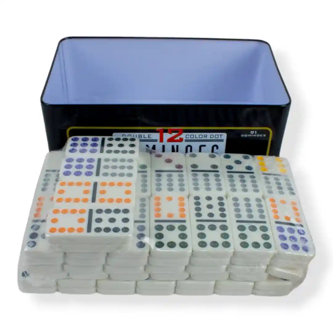 Ofrecemos el set de dominó doble 12, una versión ampliada del juego clásico, presentada en una duradera y atractiva caja metálica. Este producto es ideal para tiendas de juegos de mesa, jugueterías, y grandes superficies. La presentación premium y la inclusión de 91 fichas lo convierten en un artículo de gran valor y alta demanda, ideal para quienes buscan una experiencia de juego más completa.