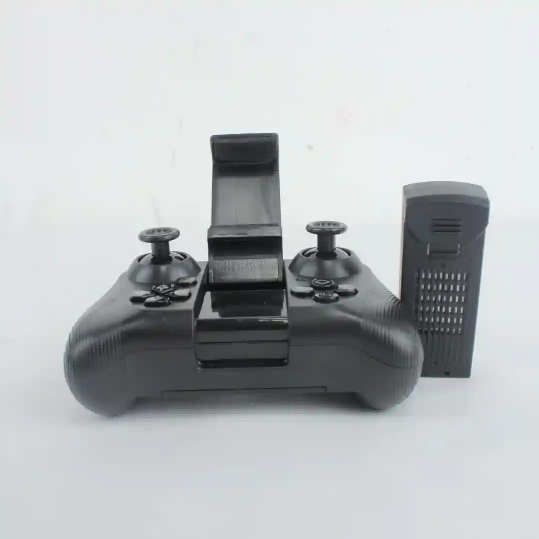 Control Remoto Incluido: Para un control total y una experiencia de vuelo inmersiva, se incluye un control remoto con un diseño ergonómico. En las imágenes puedes ver que este control tiene un soporte, lo que sugiere que puedes acoplar tu teléfono móvil a él para tener una vista en tiempo real (FPV – First Person View) de lo que capta la cámara del dron. Esto es clave para encuadrar tus tomas perfectamente.