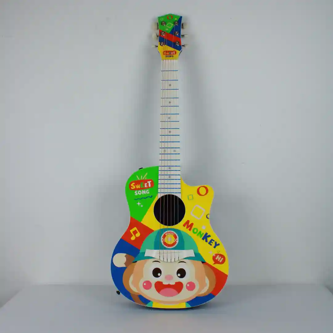 Este producto es una guitarra de juguete para niños con un diseño colorido y divertido. Es un artículo ideal para el mercado de juguetes didácticos y de entretenimiento, ya que introduce a los más pequeños en el mundo de la música de forma lúdica.