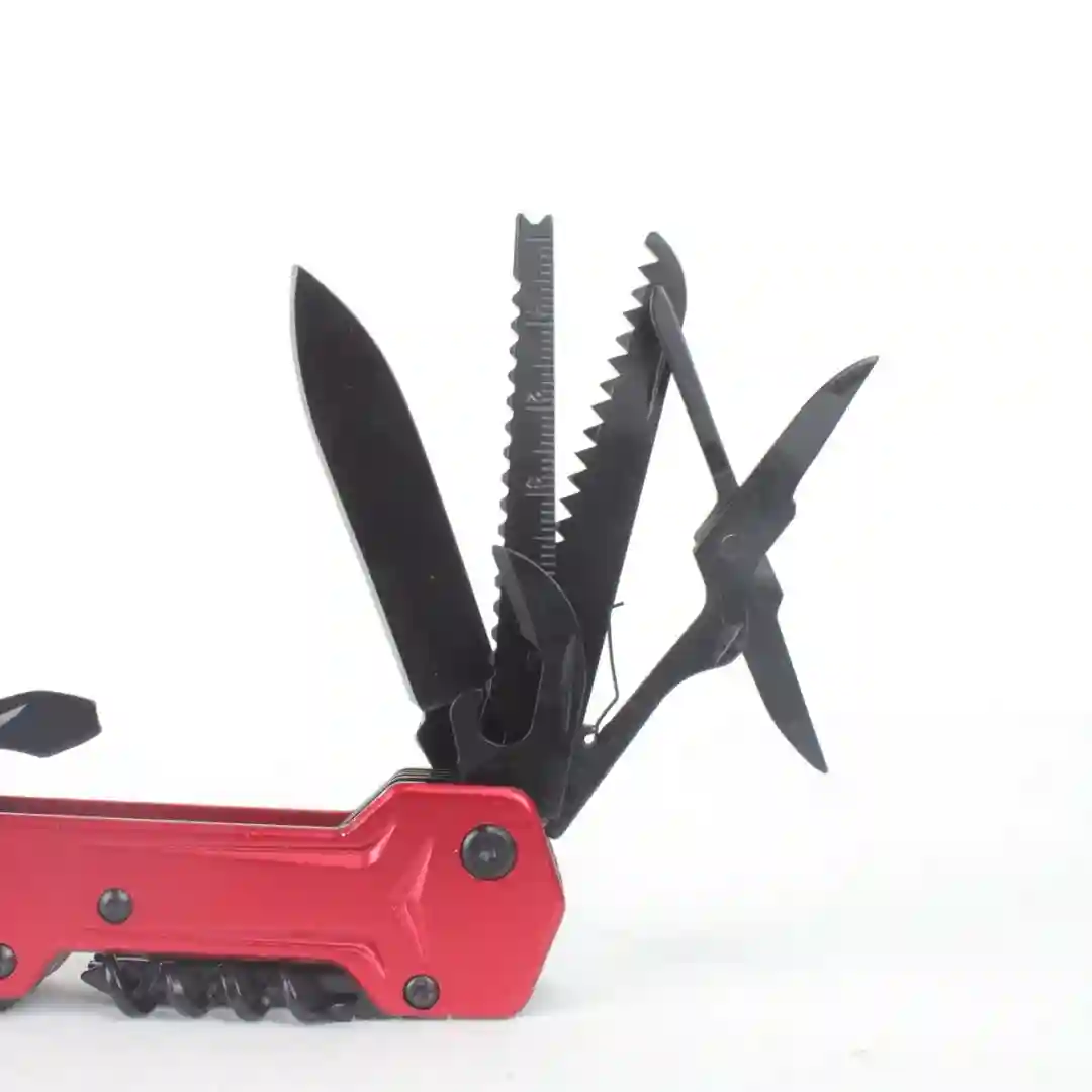 Herramienta multifuncional de alto rendimiento diseñada para ofrecer versatilidad extrema en un formato compacto y plegable. Fabricada con materiales de alta resistencia, esta herramienta integra múltiples utilidades en un solo cuerpo ergonómico, siendo el complemento ideal para actividades de supervivencia, reparaciones rápidas y equipo táctico de campo.