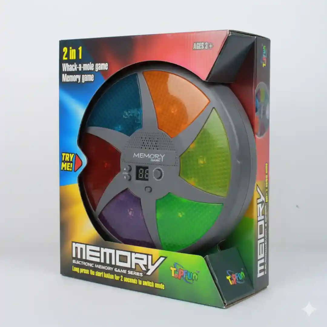 Este juego de memoria electrónico es un producto ideal para la venta al por mayor, diseñado para atraer a una amplia base de clientes y asegurar una alta rotación. Con su doble función de «Juego de Memoria» y «Whack-a-mole», ofrece un valor añadido que lo diferencia de la competencia.