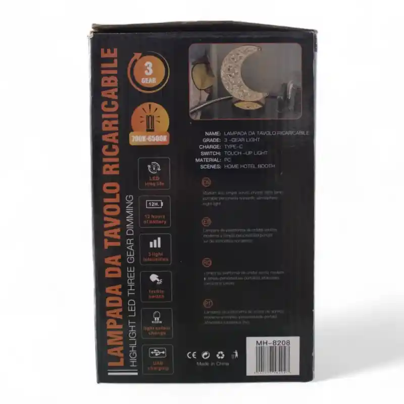 Transforma cualquier ambiente en un oasis de tranquilidad con la Lámpara de Mesa Recargable MH-8208. Inspirada en la belleza serena de la luna, esta lámpara combina un diseño moderno y minimalista con una funcionalidad excepcional, creando una atmósfera cálida y acogedora en tu hogar, hotel o incluso en un stand de exhibición.