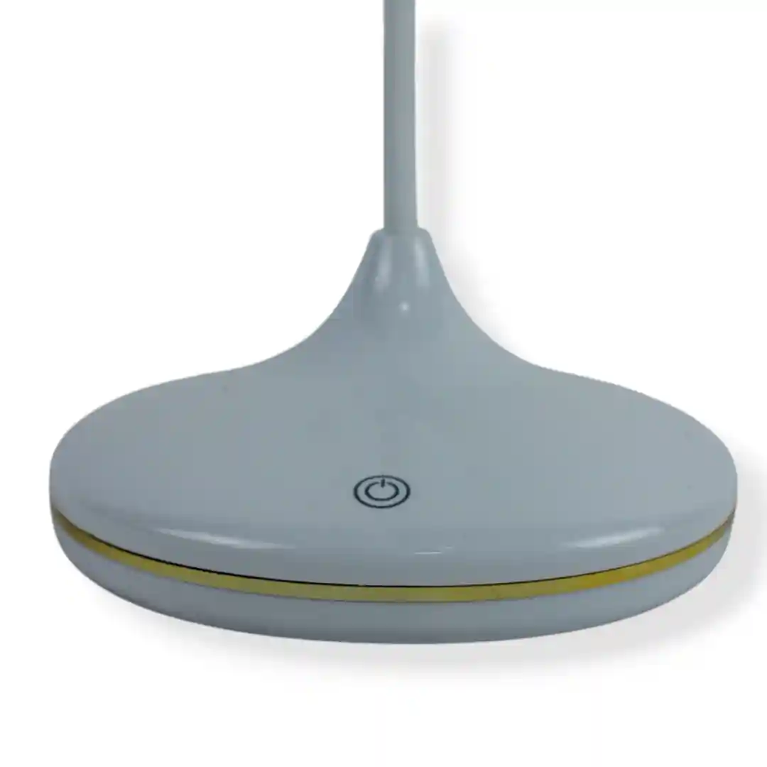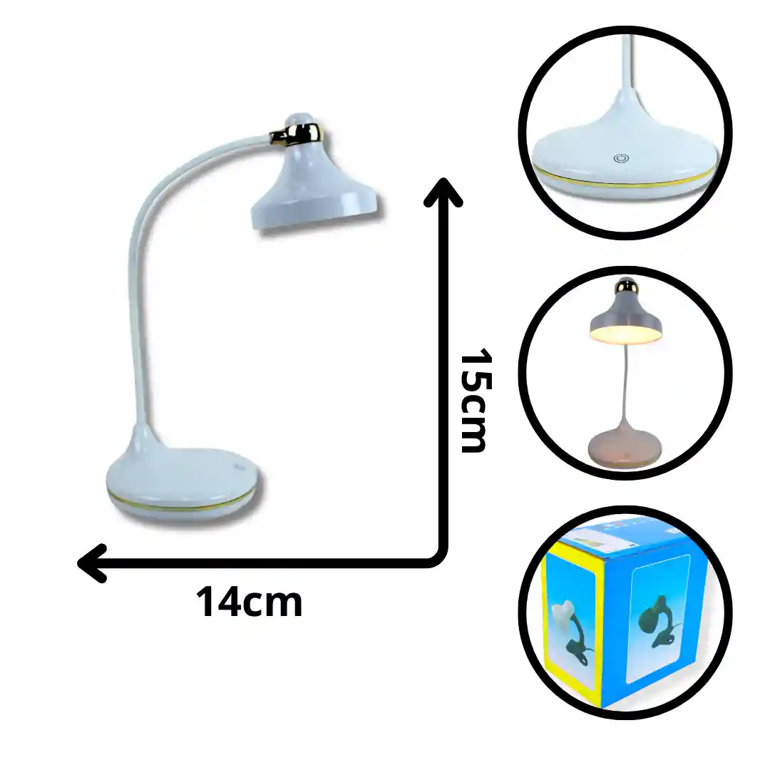 Diseño: Lámpara de escritorio con brazo flexible para ajustar la dirección de la luz.