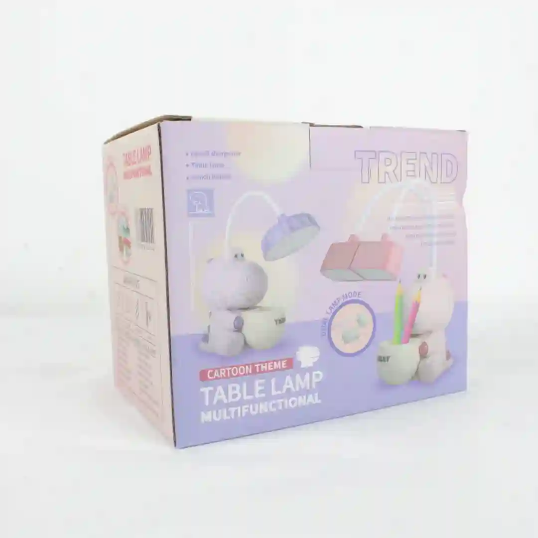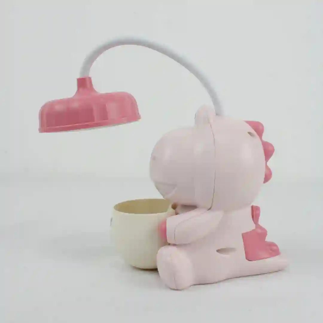 Lámpara de escritorio multifuncional con diseño temático de dibujos animados, ideal para el aprendizaje y la organización en espacios infantiles. Este dispositivo integra una fuente de iluminación ajustable, un sacapuntas integrado y un portalápices, combinando utilidad y estilo en un solo producto. Su estructura flexible permite orientar la luz de manera precisa, mientras que su diseño de personaje de dinosaurio o unicornio añade un toque decorativo y divertido al escritorio.