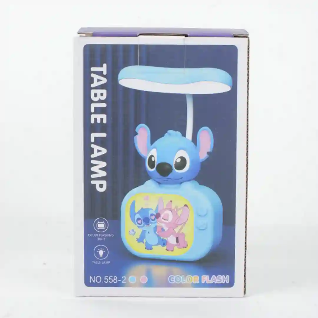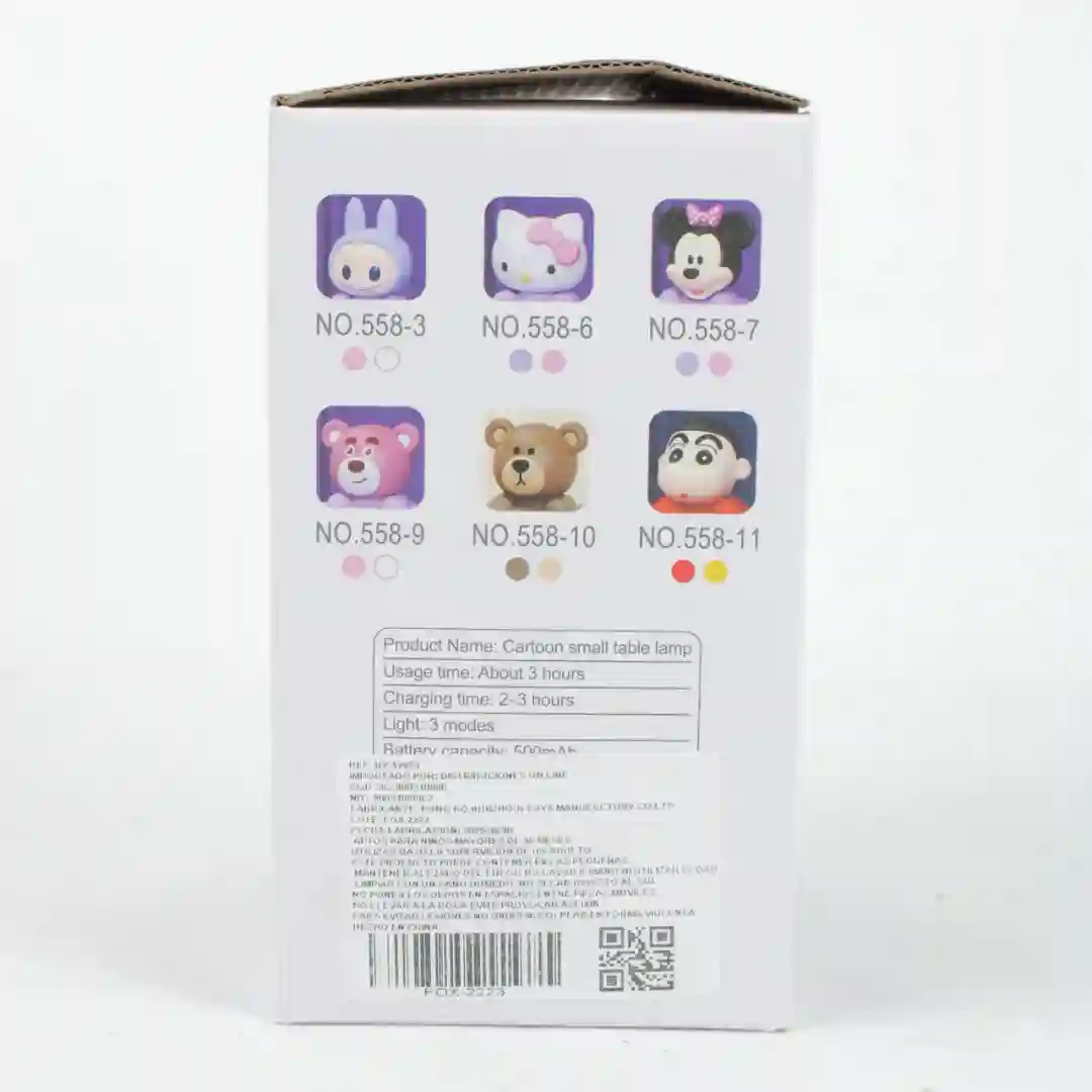 Lámpara de mesa pequeña de dibujos animados diseñada para ofrecer una iluminación funcional y decorativa en habitaciones infantiles. Este modelo integra un diseño inspirado en personajes populares con una base en forma de televisor retro que incluye una luz de destello de color. Su estructura cuenta con un cuello flexible que permite orientar la luz según la necesidad, siendo ideal para acompañar las actividades de los niños con un estilo único y divertido.