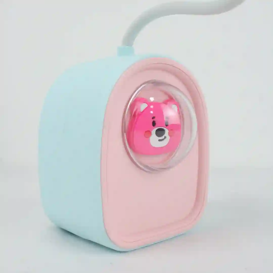Lámpara de escritorio multifuncional diseñada especialmente para espacios infantiles, que combina iluminación LED ajustable con un práctico sacapuntas integrado. Este accesorio presenta un diseño estético de mascota animada en su base, con un cuello flexible que permite orientar la luz según la necesidad. Es un producto versátil que funciona como lámpara de mesa, sacapuntas de lápices de mascota y elemento decorativo, fabricado con materiales resistentes y tecnología de carga moderna.