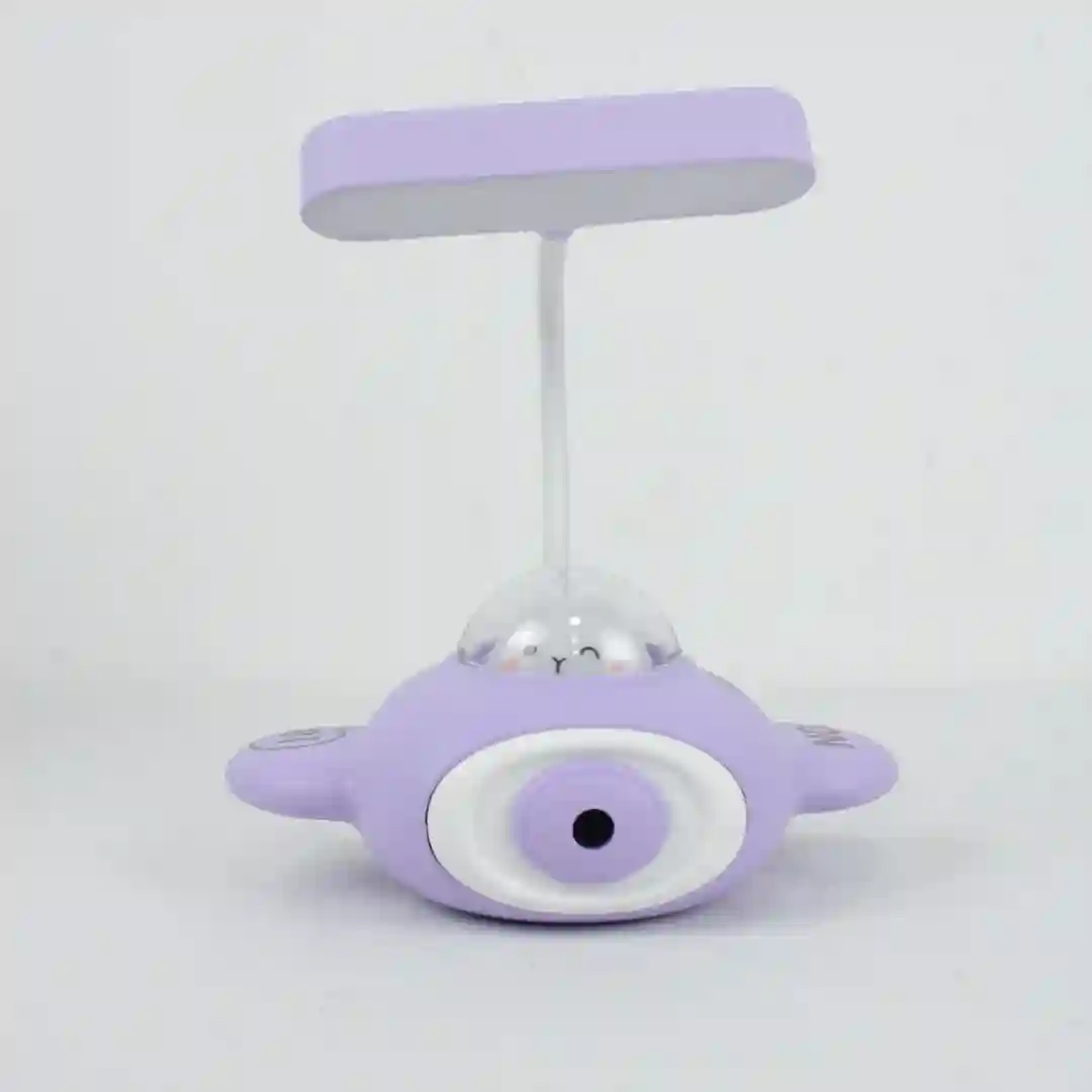Lámpara de escritorio multifuncional con diseño animado de astronauta, ideal para iluminar y organizar espacios de estudio o lectura. Este dispositivo integra una fuente de luz LED ajustable mediante un cuello flexible y un práctico sacapuntas en la base. Su diseño compacto y divertido la convierte en un accesorio esencial y decorativo para el escritorio de los más pequeños.