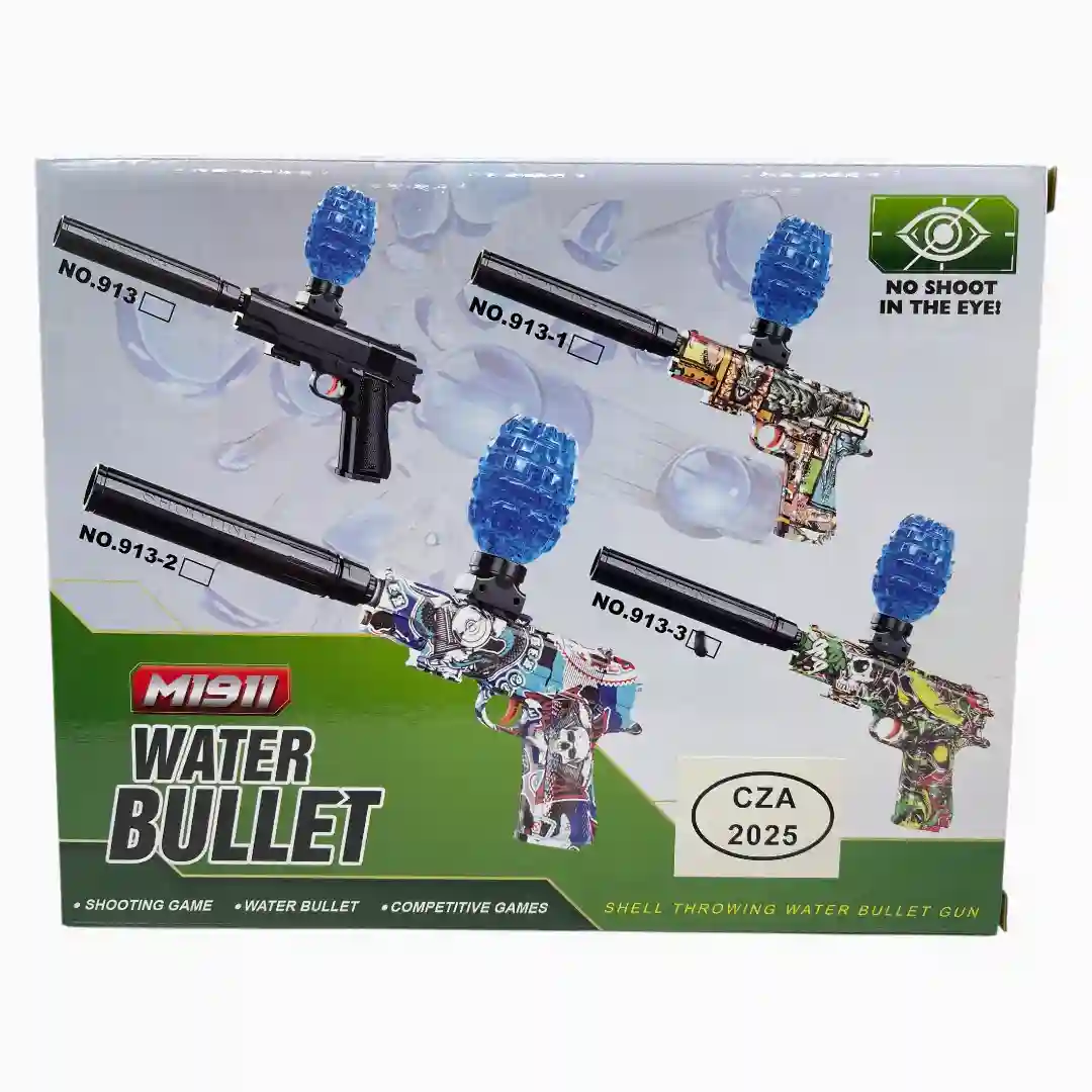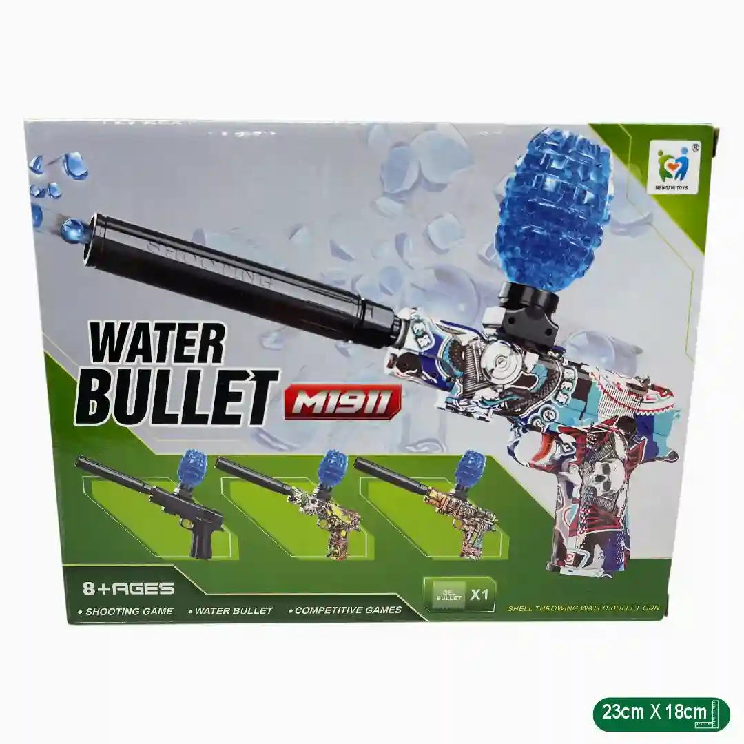 Pistola lanzadora de orbe de agua de alto rendimiento, diseñada para ofrecer una experiencia de juego emocionante y segura. Este modelo automático está basado en el diseño clásico M1911, presentando un acabado moderno con gráficos dinámicos. Es ideal para actividades al aire libre, fomentando el ejercicio físico, la observación y la resistencia. Al utilizar proyectiles de gel que se fragmentan al impacto y se evaporan, garantiza una actividad limpia y respetuosa con el medio ambiente.