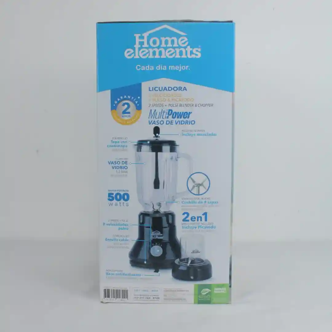 LICUADORA VIDRIO HOME ELEMENTS 500W HELVV500N