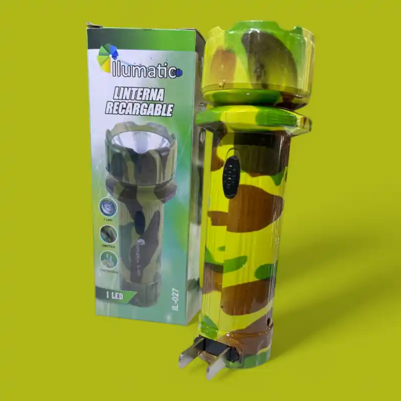 Nuestra linterna recargable Iluminatic IL-027 es la solución perfecta para todas tus necesidades de iluminación. Ya sea para acampar, realizar actividades al aire libre, o simplemente tener una fuente de luz de respaldo en casa, esta linterna te proporcionará una iluminación potente y confiable.