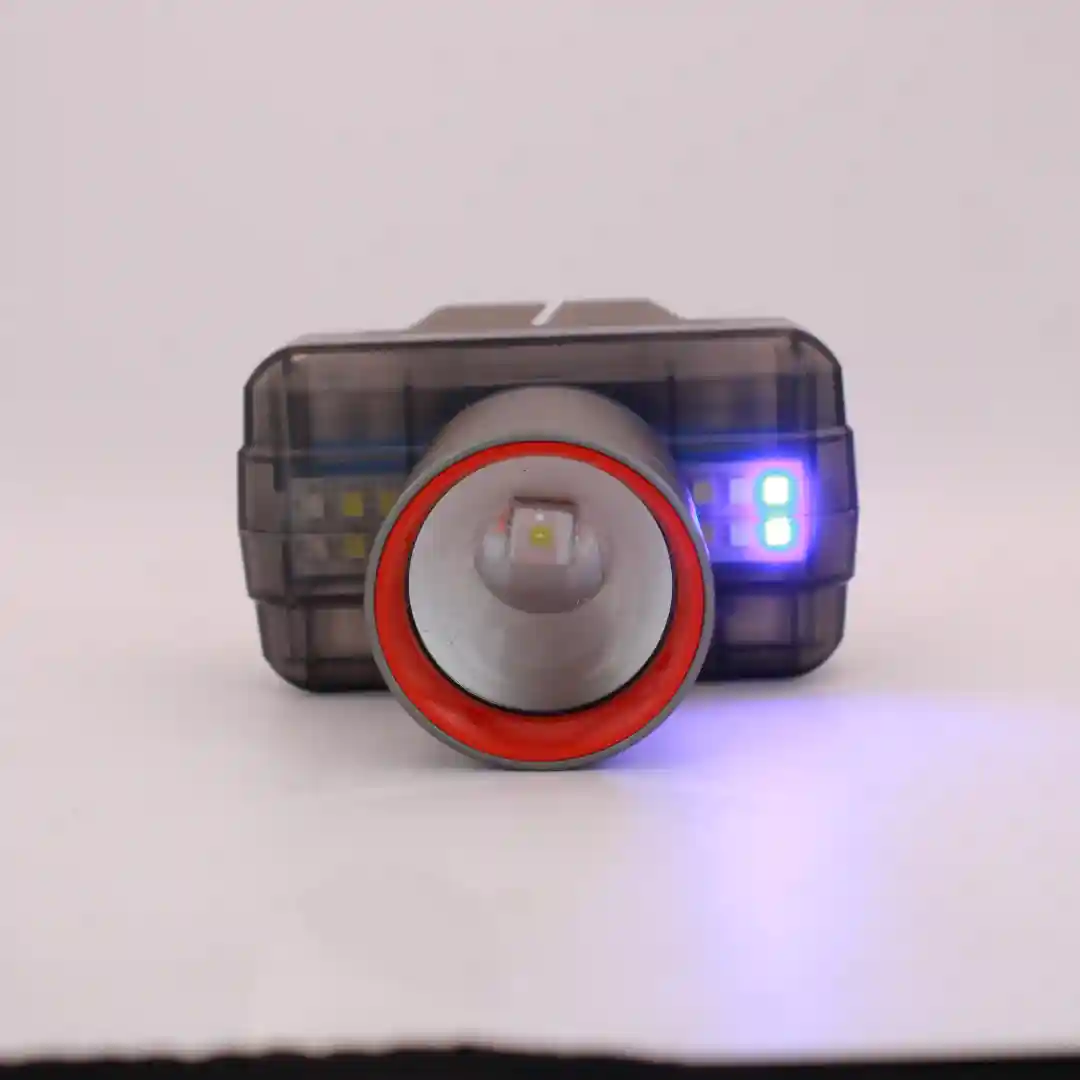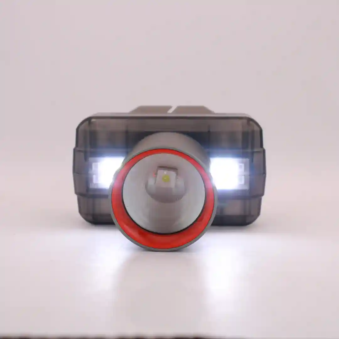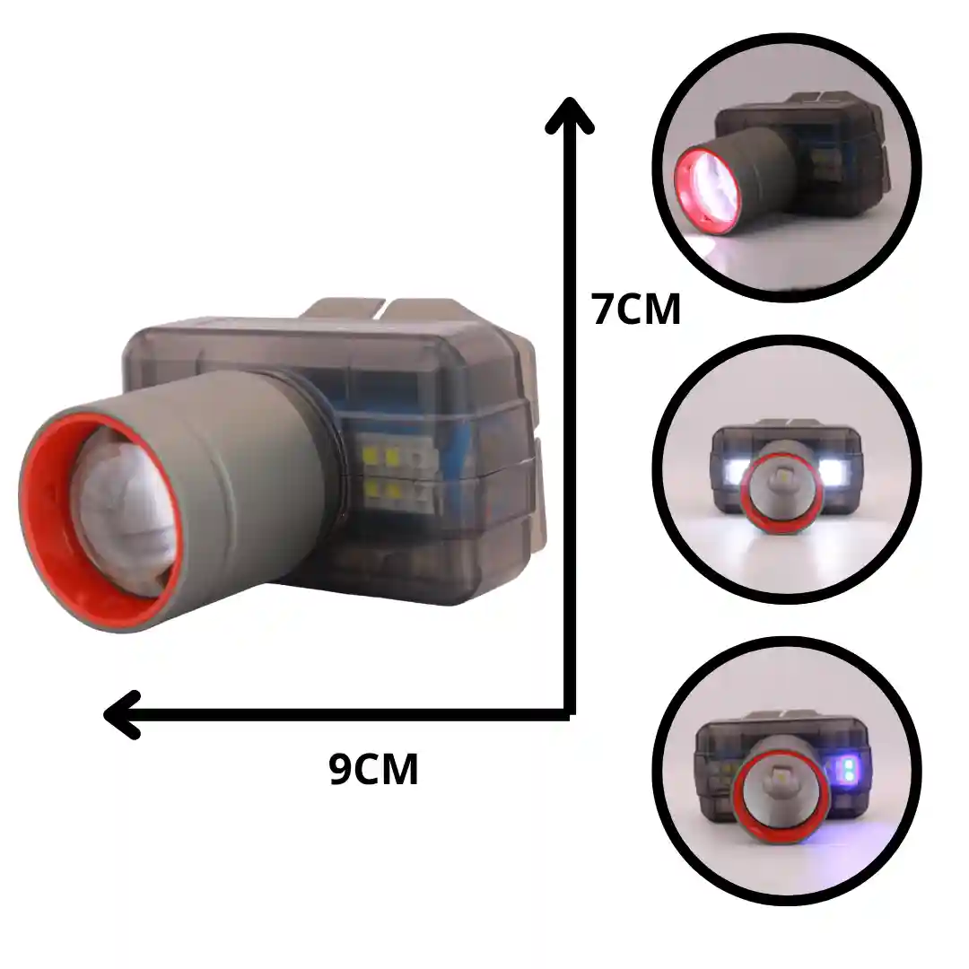 Lo más genial es que cuenta con varias funciones de luz: una potente luz blanca frontal con zoom para ver a gran distancia, y luces laterales LED rojas y azules que parpadean para usarlas como luz de emergencia o señalización. Con su batería de litio de 7 watts, tiene una visibilidad de hasta 2.2 kilómetros. Y no te preocupes por el tamaño, es compacta (9 cm por 7 cm), así que la puedes llevar a todos lados. ¡La linterna que te da la seguridad que necesitas en cualquier situación!