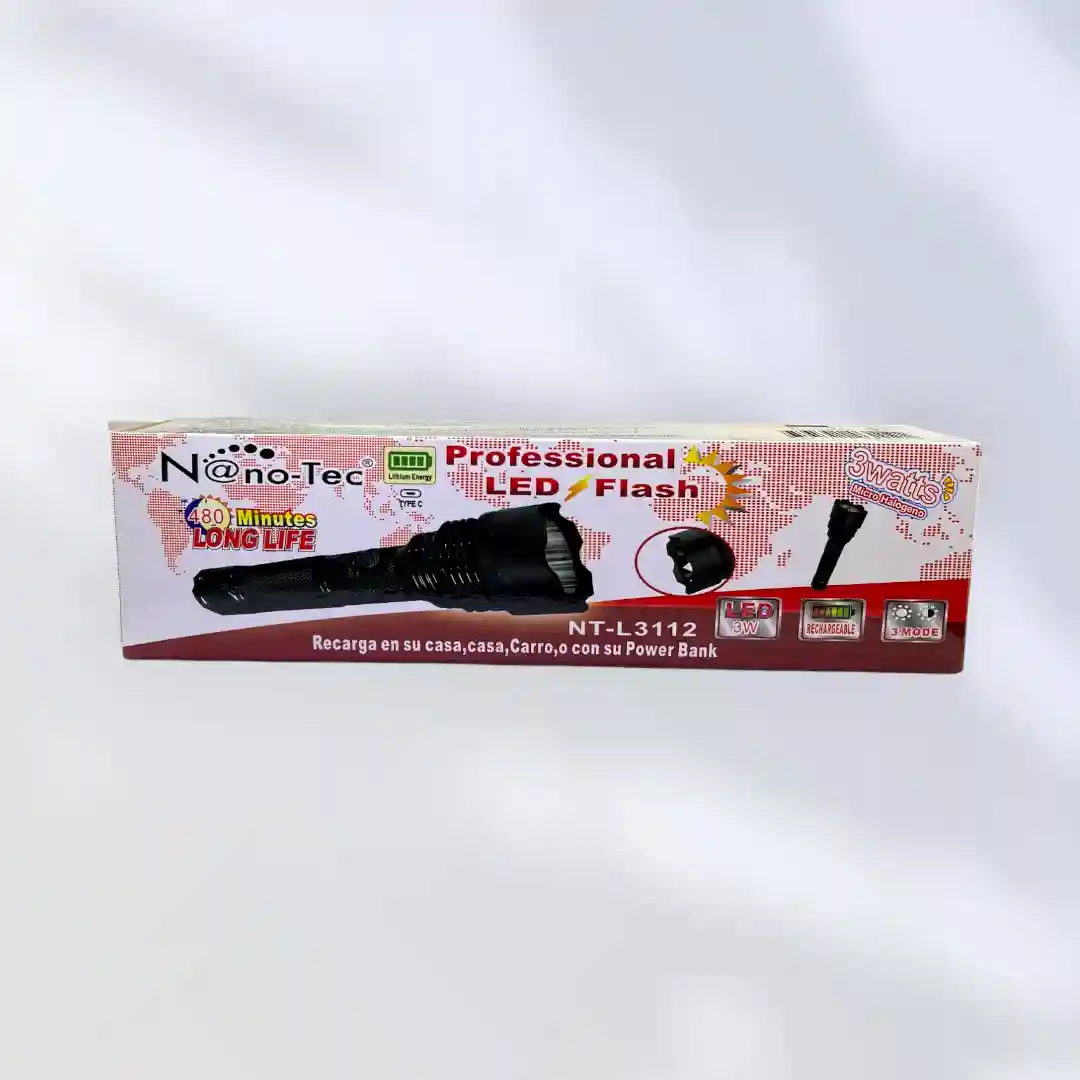 - Potencia y Duración: Equipada con un LED de 3W de alta eficiencia, la NT-L3112 ofrece una luz brillante y enfocada que te permitirá ver con claridad en la oscuridad más absoluta. Además, su batería recargable te garantiza hasta 480 minutos de uso continuo.