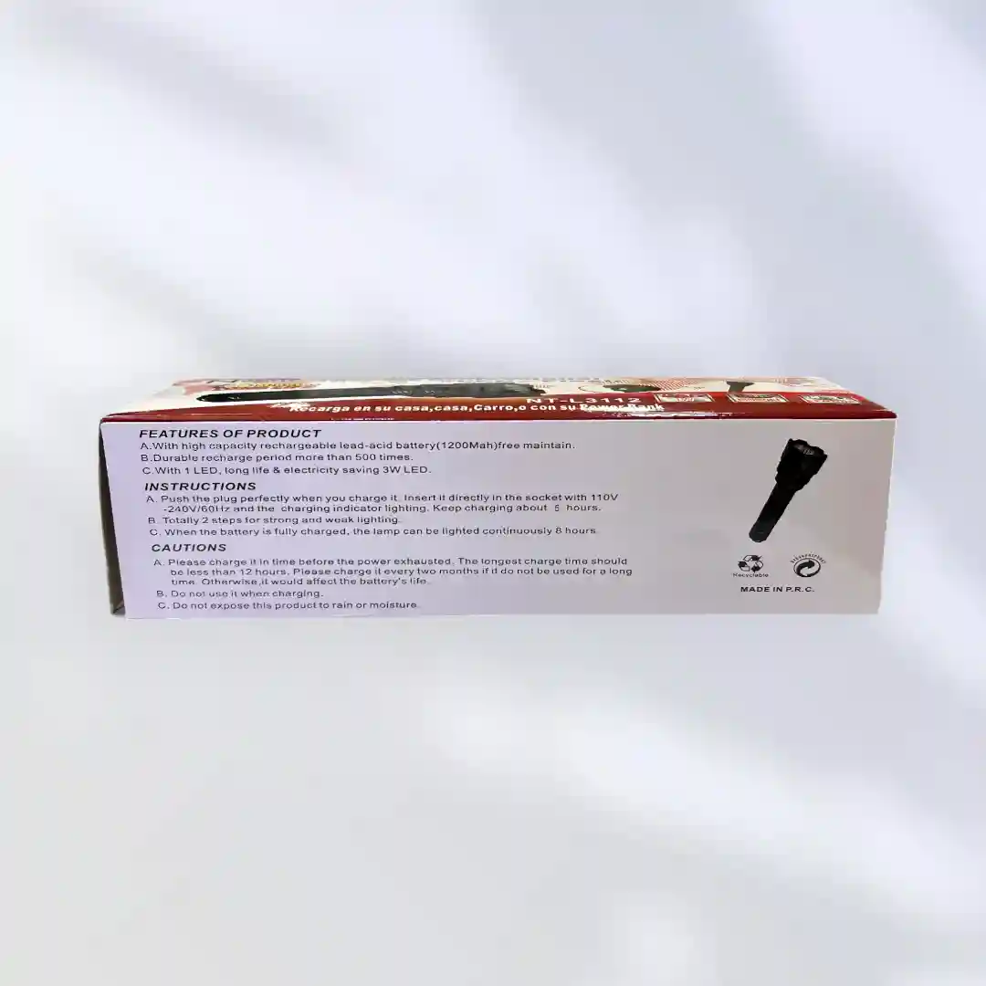 - Recargable y Ecológica: Olvídate de las pilas desechables. La NT-L3112 se recarga fácilmente a través de un cable USB, lo que te permite ahorrar dinero y reducir tu impacto ambiental.