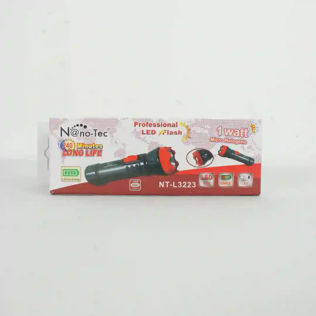 La linterna Nanotec NT-L3223 es un dispositivo de iluminación portátil diseñado para ofrecer versatilidad y potencia en un formato compacto. Este modelo integra una fuente de luz dual que consiste en una linterna frontal de largo alcance y una lámpara lateral con tecnología COB, ideal para iluminar áreas de trabajo o espacios cerrados de manera uniforme. Su sistema de carga directa mediante enchufe retráctil elimina la necesidad de cables externos, garantizando practicidad y autonomía. Es la herramienta perfecta para el hogar, actividades de campamento, seguridad y kits de emergencia.