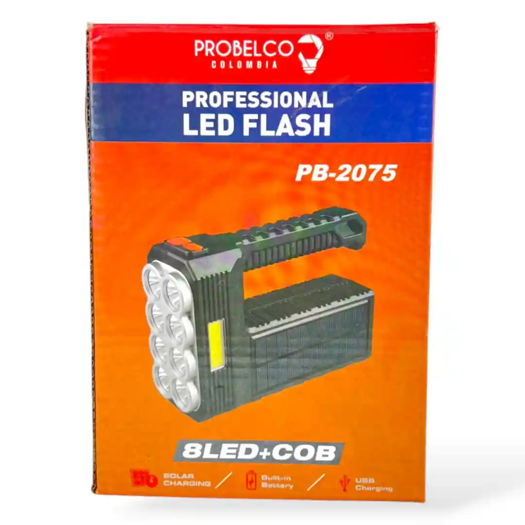 ¡Iluminación Avanzada y Carga Solar con la Linterna PROBELCO PB-2075 Profesional LED Flash – Tu Compañera Indispensable!