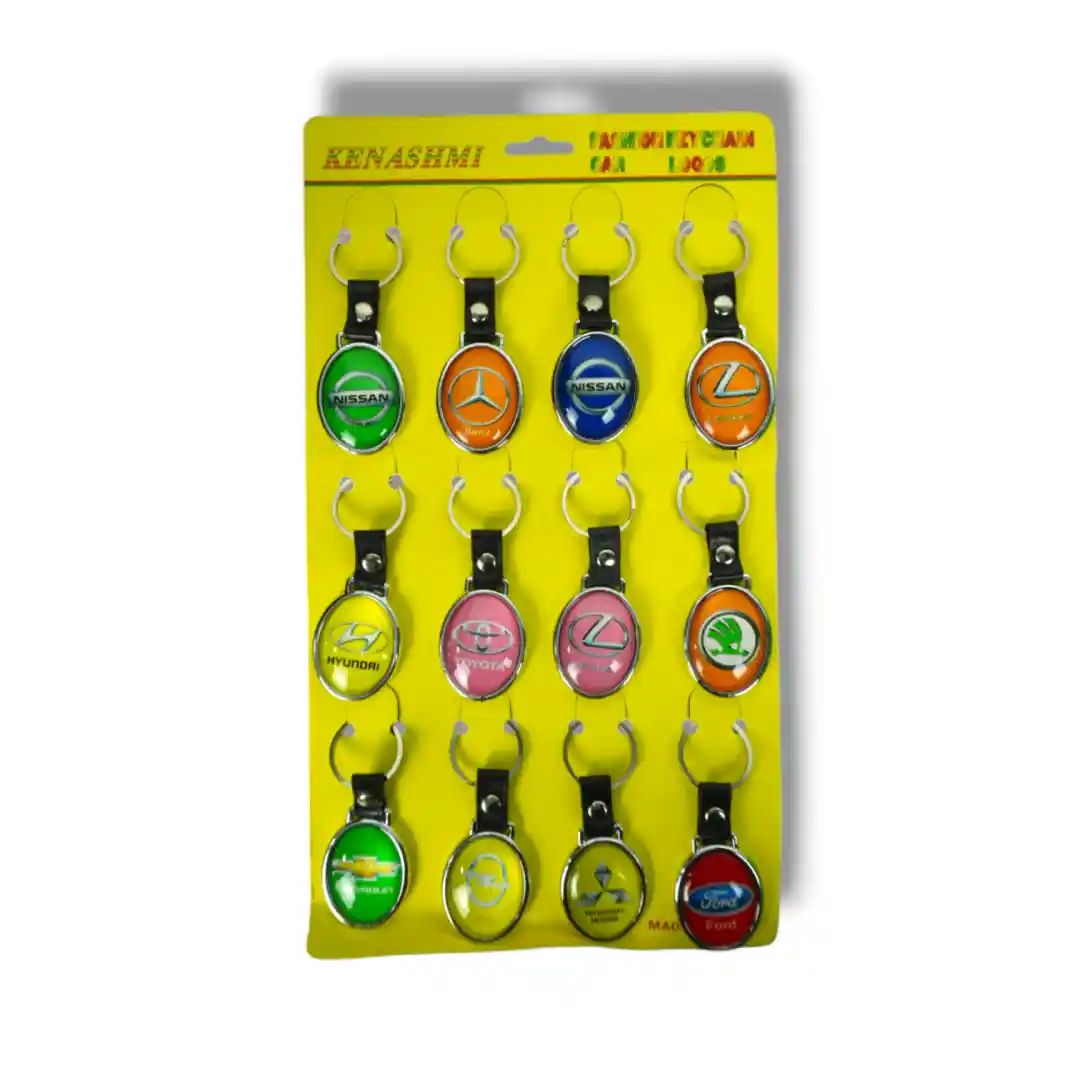 • Set de 12 llaveros: Incluye una docena de llaveros con diferentes logos de marcas de carros.