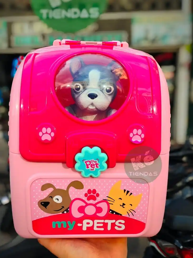 Presentamos el adorable Maletín, el juguete perfecto para los pequeños amantes de los animales. Este encantador conjunto incluye un maletín rosa, diseñado para llevar un tierno cachorro que te acompañará en todas tus aventuras.