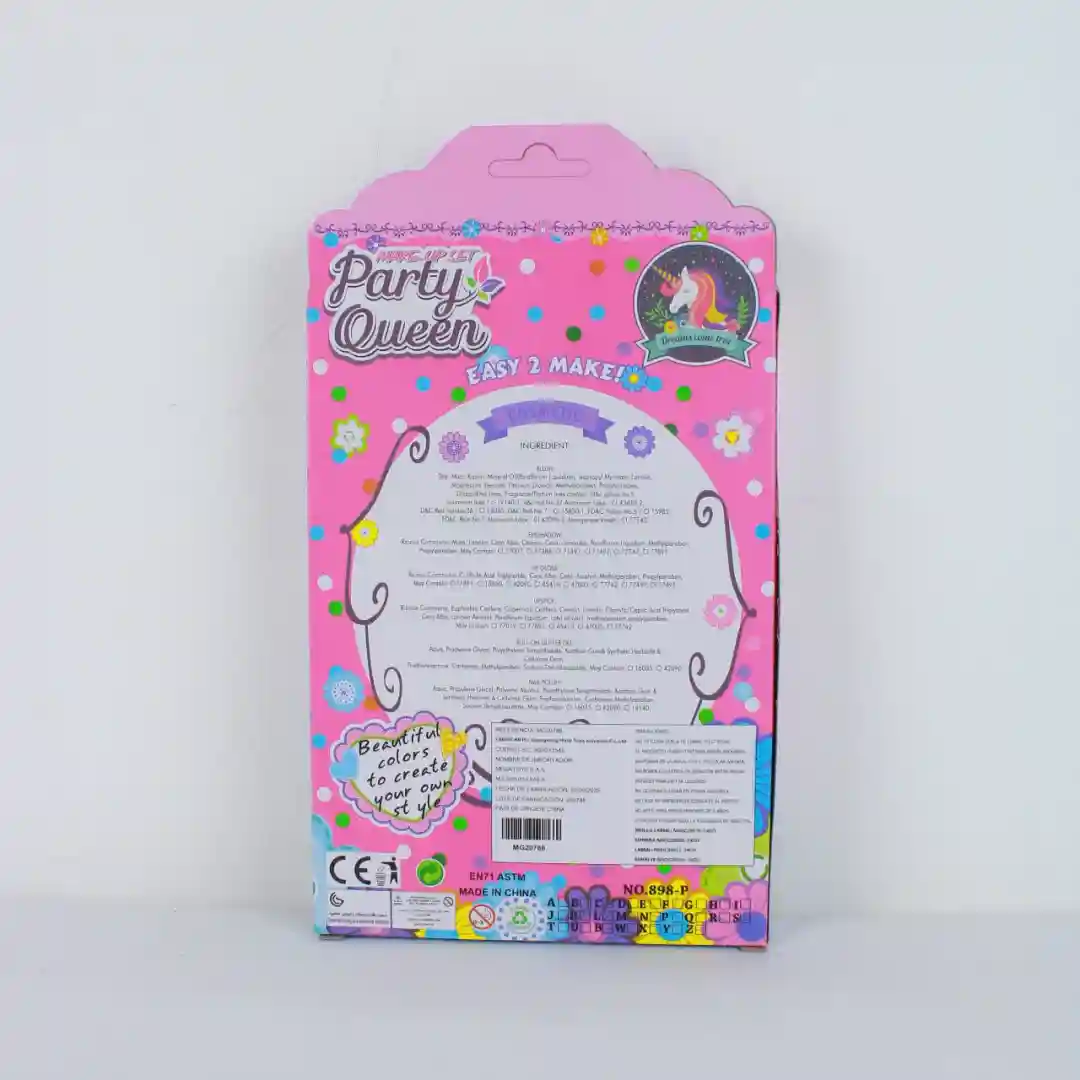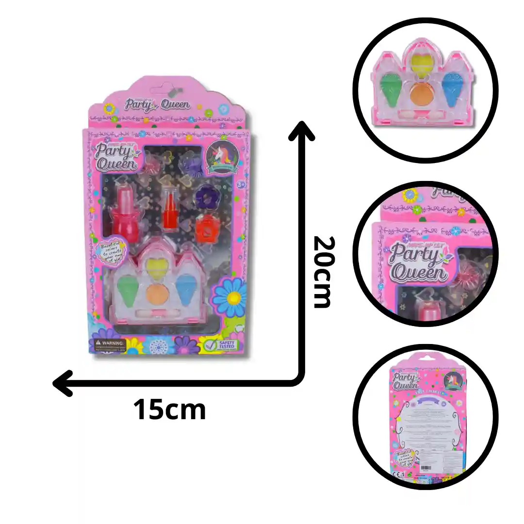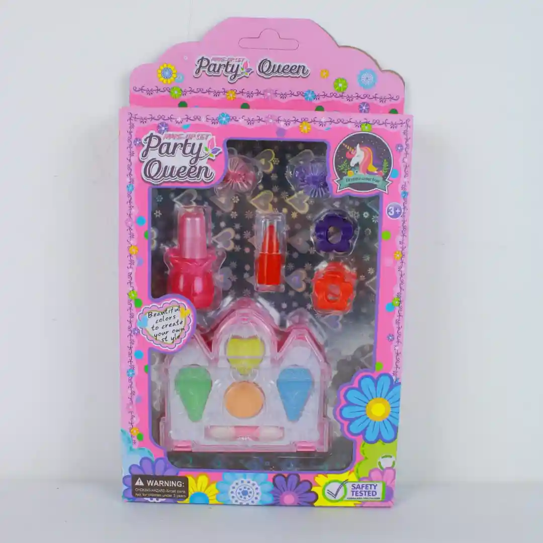 El Set de Maquillaje Castillo Party Queen es un juguete cosmético infantil diseñado para el juego creativo y de imitación. Su presentación en estuche con forma de castillo y accesorios de belleza incluidos lo convierten en un producto atractivo, seguro y de alta rotación en el mercado.