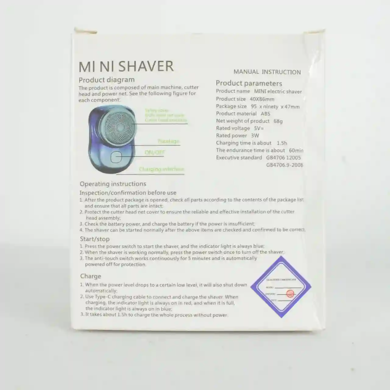 Nombre del producto: Mini afeitadora eléctrica