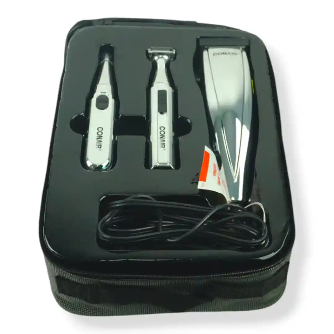 Invierte en tu estilo y comodidad con el Kit de Corte de Cabello y Aseo en Casa Conair Chrome 3 en 1. ¡Tu apariencia personal nunca ha sido tan fácil de mantener!