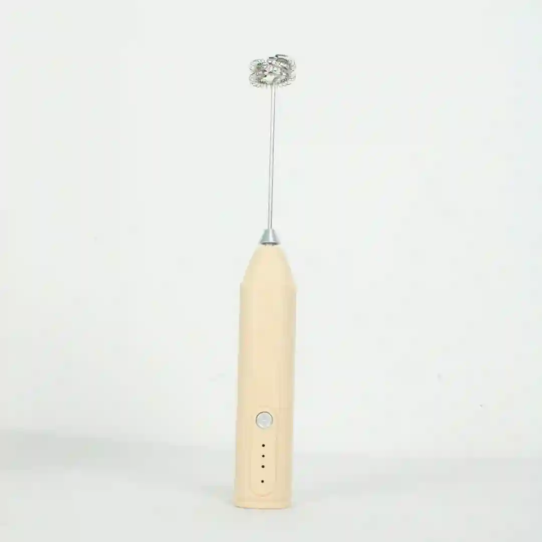 Dispositivo batidor eléctrico de mano diseñado para la preparación eficiente de bebidas y alimentos ligeros. Este mezclador inalámbrico permite crear espuma para café, batir huevos o mezclar suplementos de forma rápida y sencilla. Su diseño ergonómico y motor de alta velocidad ofrecen una solución práctica para la cocina moderna, garantizando texturas suaves y homogéneas con un esfuerzo mínimo.