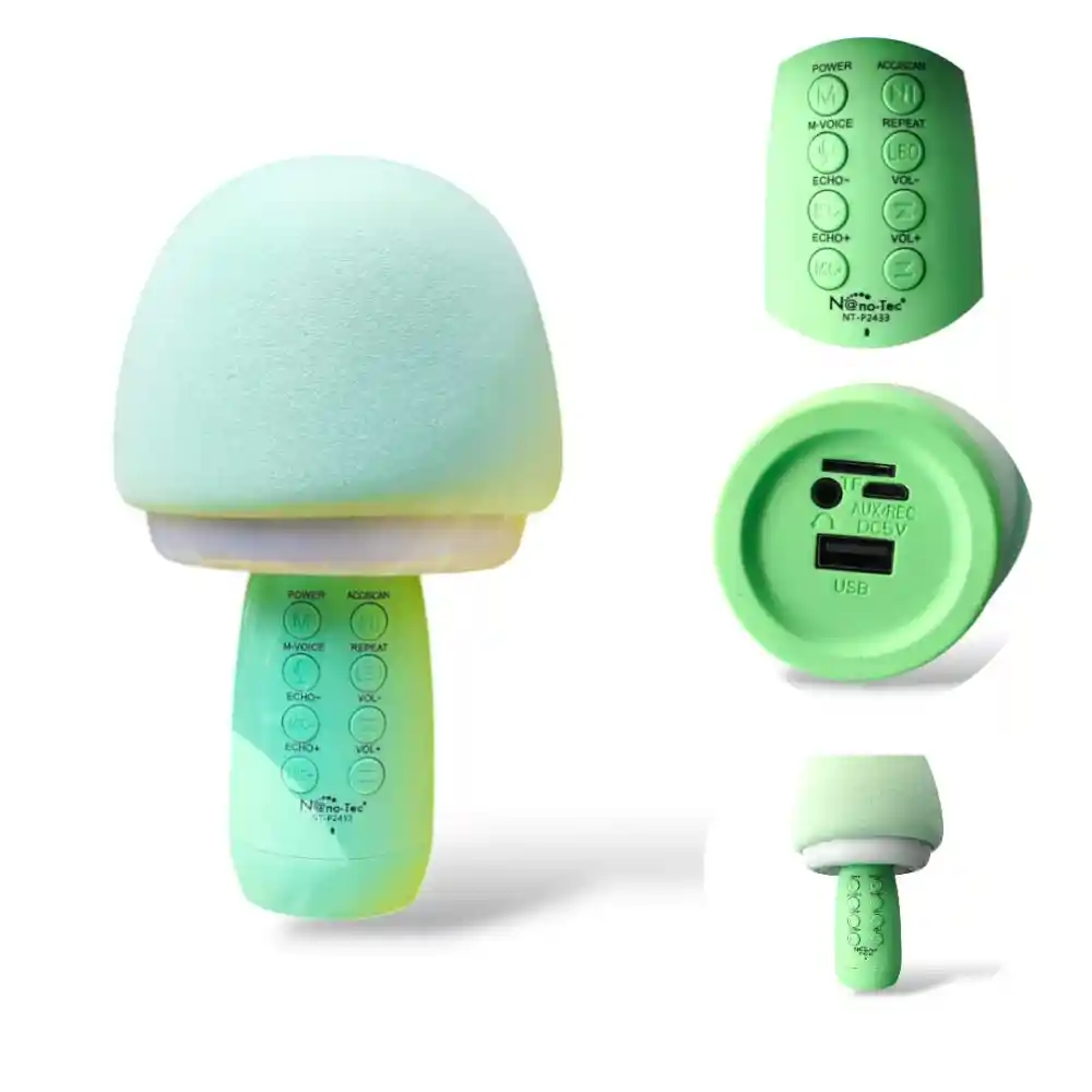 - Controles Multifunción: Equipado con botones intuitivos para ajustar el volumen, el eco y el modo de voz, así como para reproducir o pausar canciones. Incluye funciones como: