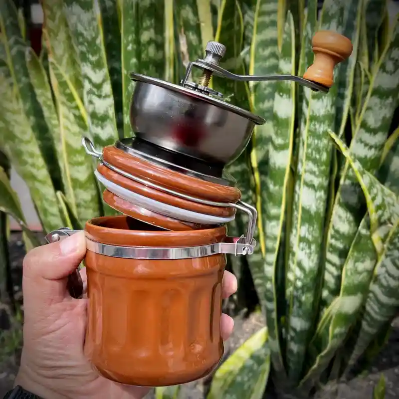 - Incluye Recipiente: El conjunto incluye un recipiente para almacenar el café recién molido.