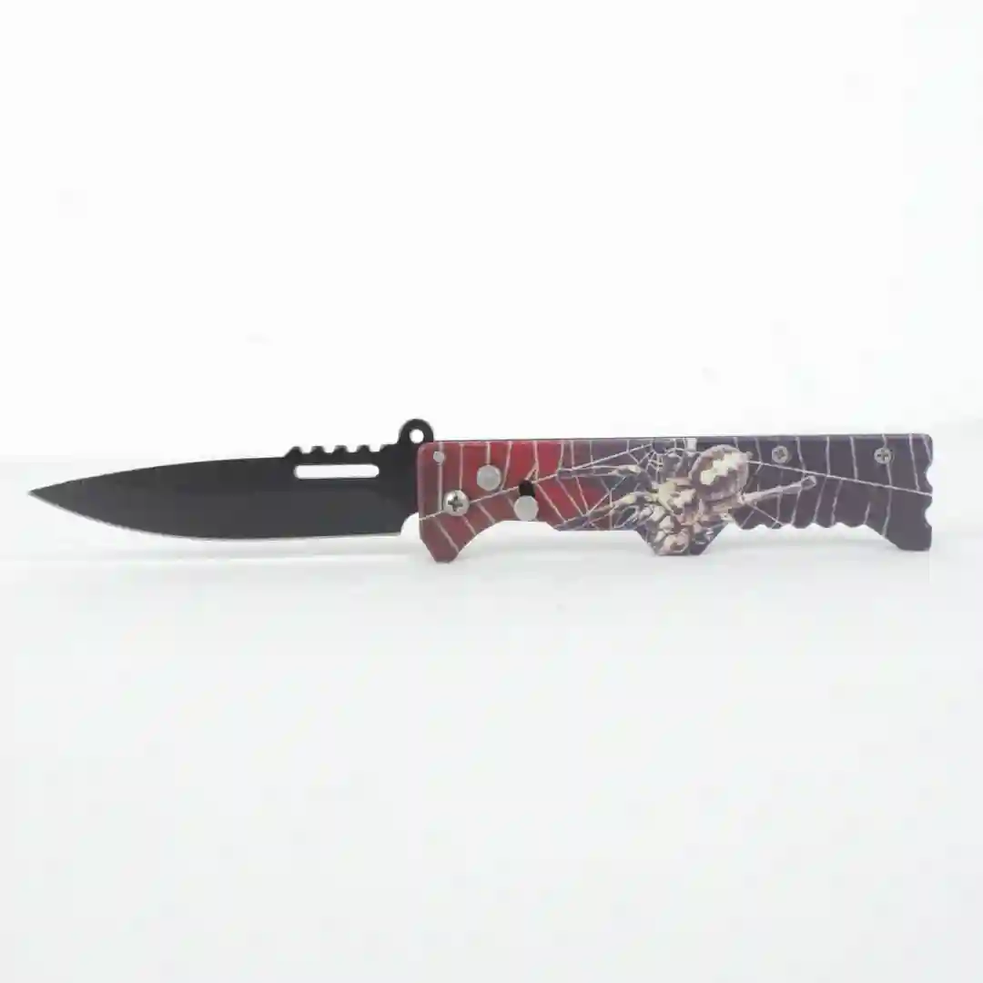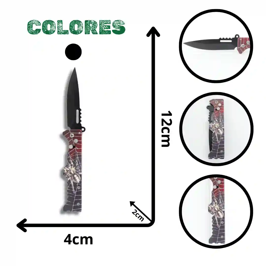 Navaja táctica de apertura automática perteneciente a la serie de supervivencia, diseñada con un acabado estético integral mediante patrones estampados de alta definición. Este modelo combina una estructura metálica robusta con un mecanismo de despliegue rápido, ofreciendo una herramienta funcional y visualmente impactante. Su diseño ergonómico asegura un manejo preciso, ideal para entusiastas del equipo táctico y actividades al aire libre.