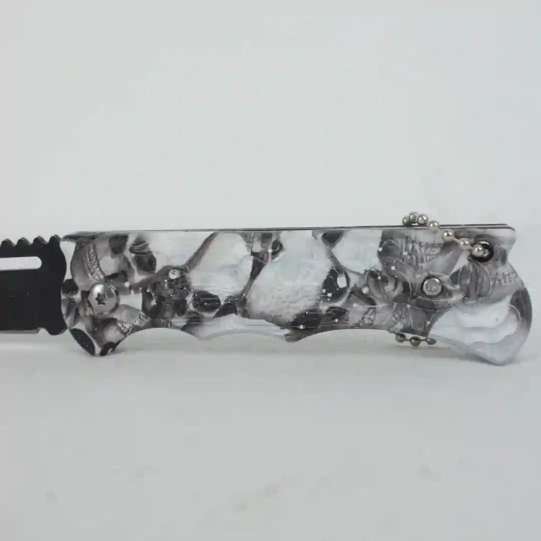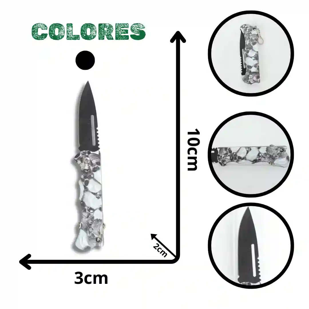 Navaja plegable de alto rendimiento con diseño ergonómico y acabados de primera calidad. Cuenta con una estructura robusta en color negro mate, complementada con paneles decorativos en madera que proporcionan un agarre superior y una estética táctica profesional. Es una herramienta indispensable para actividades al aire libre, supervivencia y uso diario.