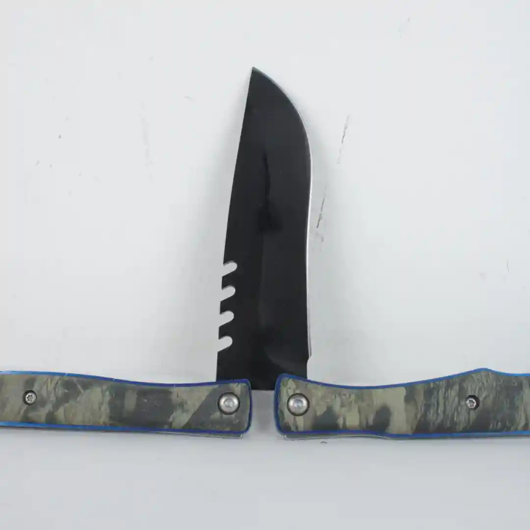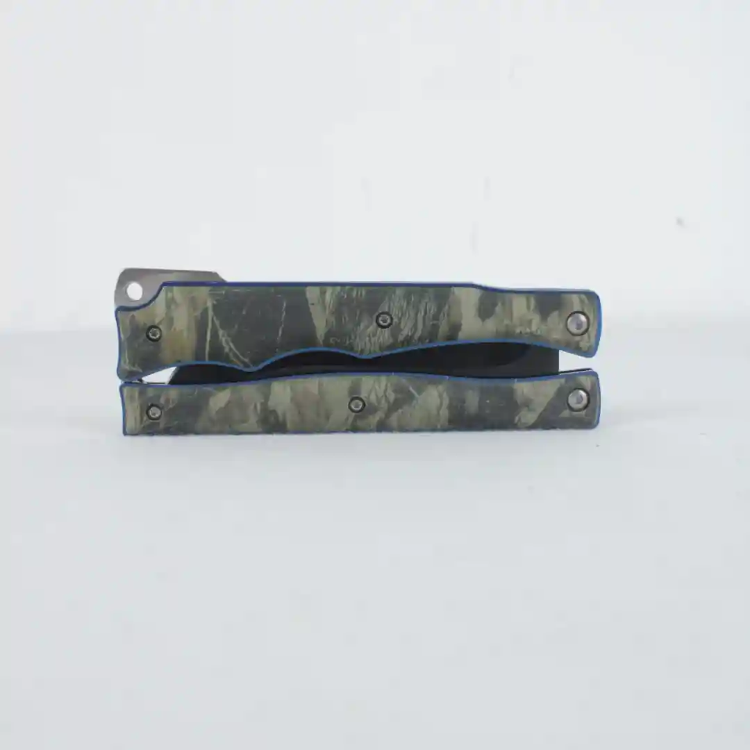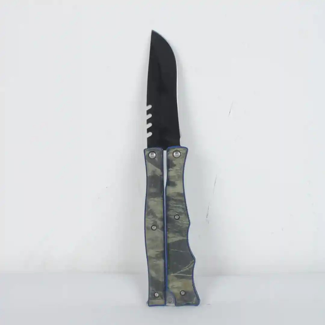 Ofrezca a su clientela una navaja de maniobra con estética moderna: la Navaja Mariposa (Balisong) Referencia AK1009. Su diseño camuflado y hoja oscura la hacen altamente deseable para aficionados, coleccionistas y tiendas de artículos tácticos, asegurando una excelente rotación.