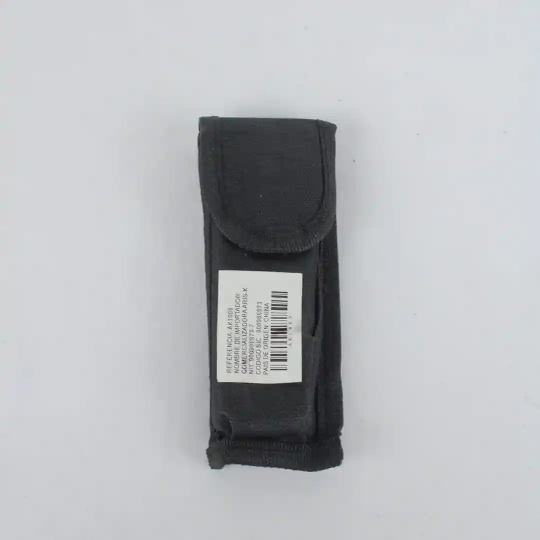 1 x Funda de Nylon negra con cierre de velcro y trabilla para cinturón (Referencia AK1009 visible en la etiqueta).