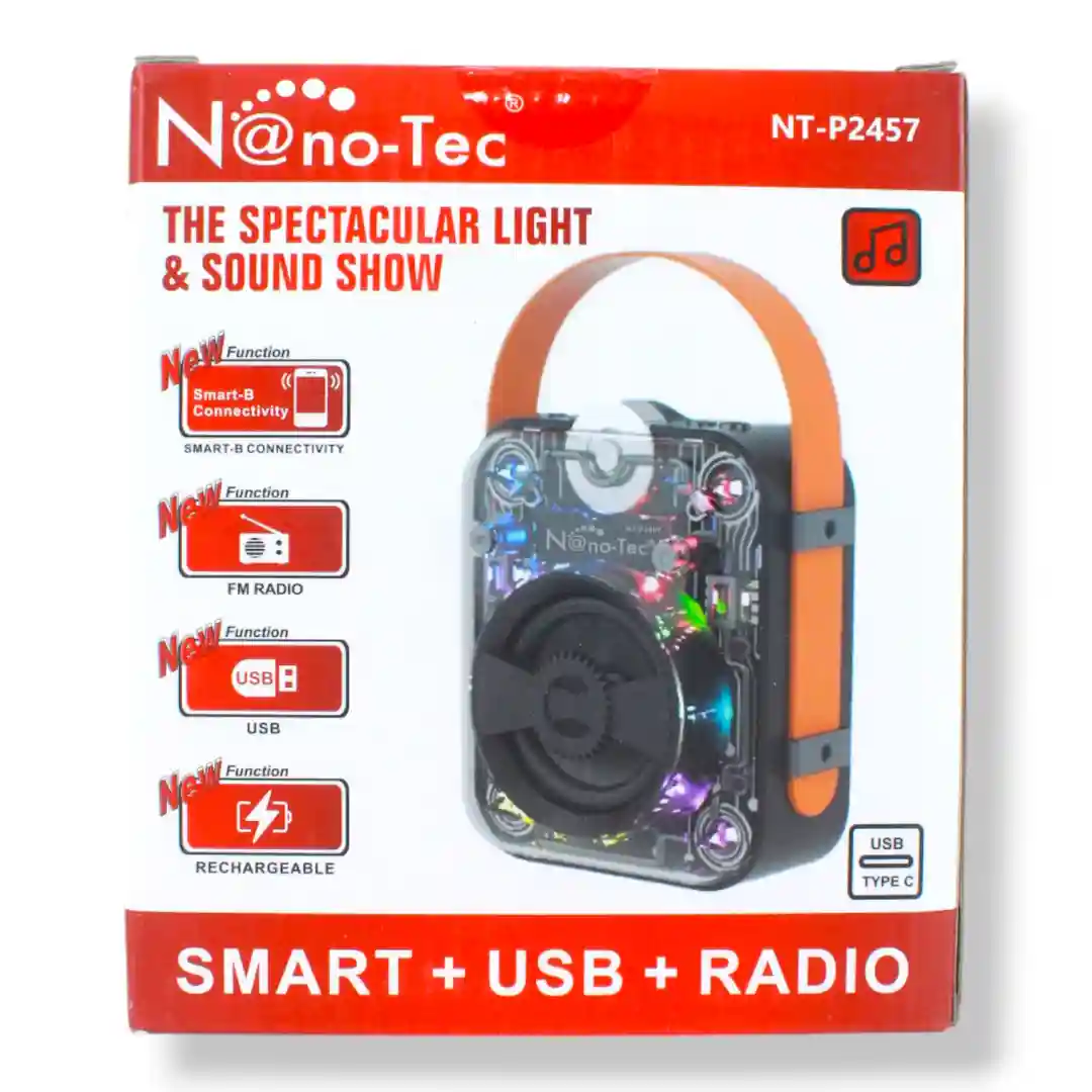 ¡Te presento el parlante Nano-Tec NT-P2457, la máquina de la diversión portátil que estabas esperando! Con su diseño único en forma de llanta y unas medidas de 20 cm de alto, 19 cm de ancho y 10 cm de largo, este parlante no solo va a sonar genial, sino que también se verá increíble en cualquier lugar.