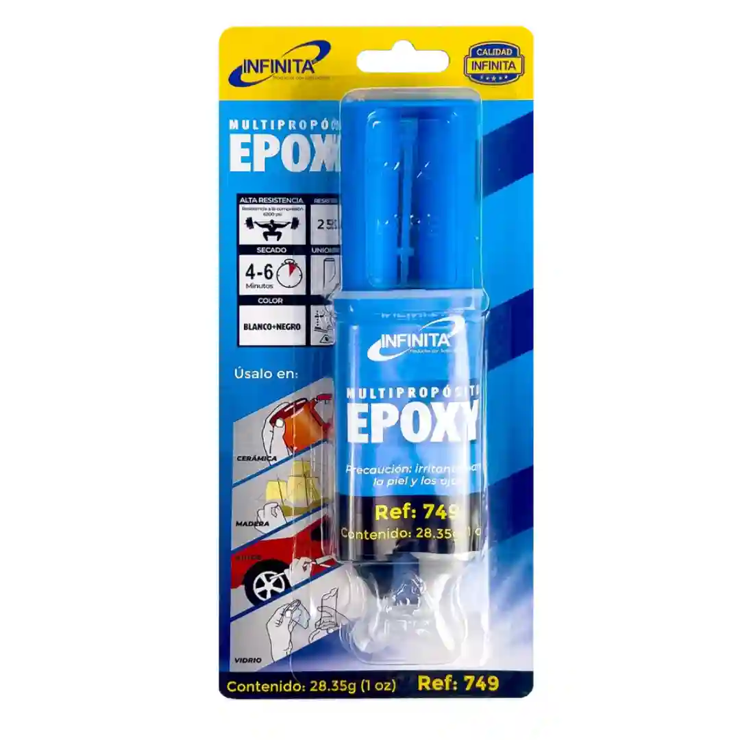 El Pegante Infinita Super Epoxy 750 es un adhesivo bicomponente de alta resistencia diseñado para uniones estructurales que requieren máxima durabilidad. Este sistema «2 en 1» consta de una resina y un endurecedor que, al mezclarse, forman una soldadura plástica extremadamente fuerte capaz de reparar, rellenar y pegar una amplia variedad de materiales rígidos. Su presentación en jeringa doble garantiza una dosificación exacta y equitativa de ambos componentes, facilitando una mezcla homogénea para resultados profesionales. Es resistente al agua, a los solventes y a temperaturas extremas, lo que lo convierte en la solución definitiva para reparaciones domésticas, automotrices e industriales.