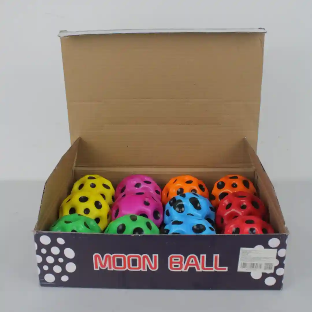 Diseño: Esfera texturizada con múltiples perforaciones circulares negras, simulando la superficie lunar o de un cráter.