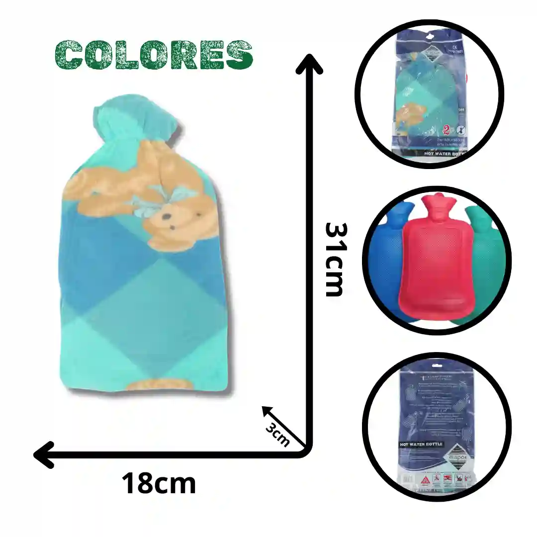 Bolsa de agua caliente diseñada para brindar confort térmico y alivio, equipada con una funda de tela suave que optimiza la experiencia de uso. Su diseño incluye un revestimiento exterior que protege la piel del contacto directo, manteniendo la temperatura de forma prolongada y segura.